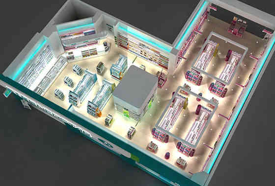 • 廣州展廳設計公司海王星辰終端形象藥店裝修設計